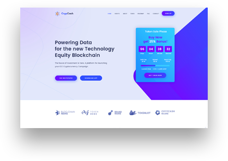 Crypcash - ICO, Bitcoin and Cryptocurrency Landing page